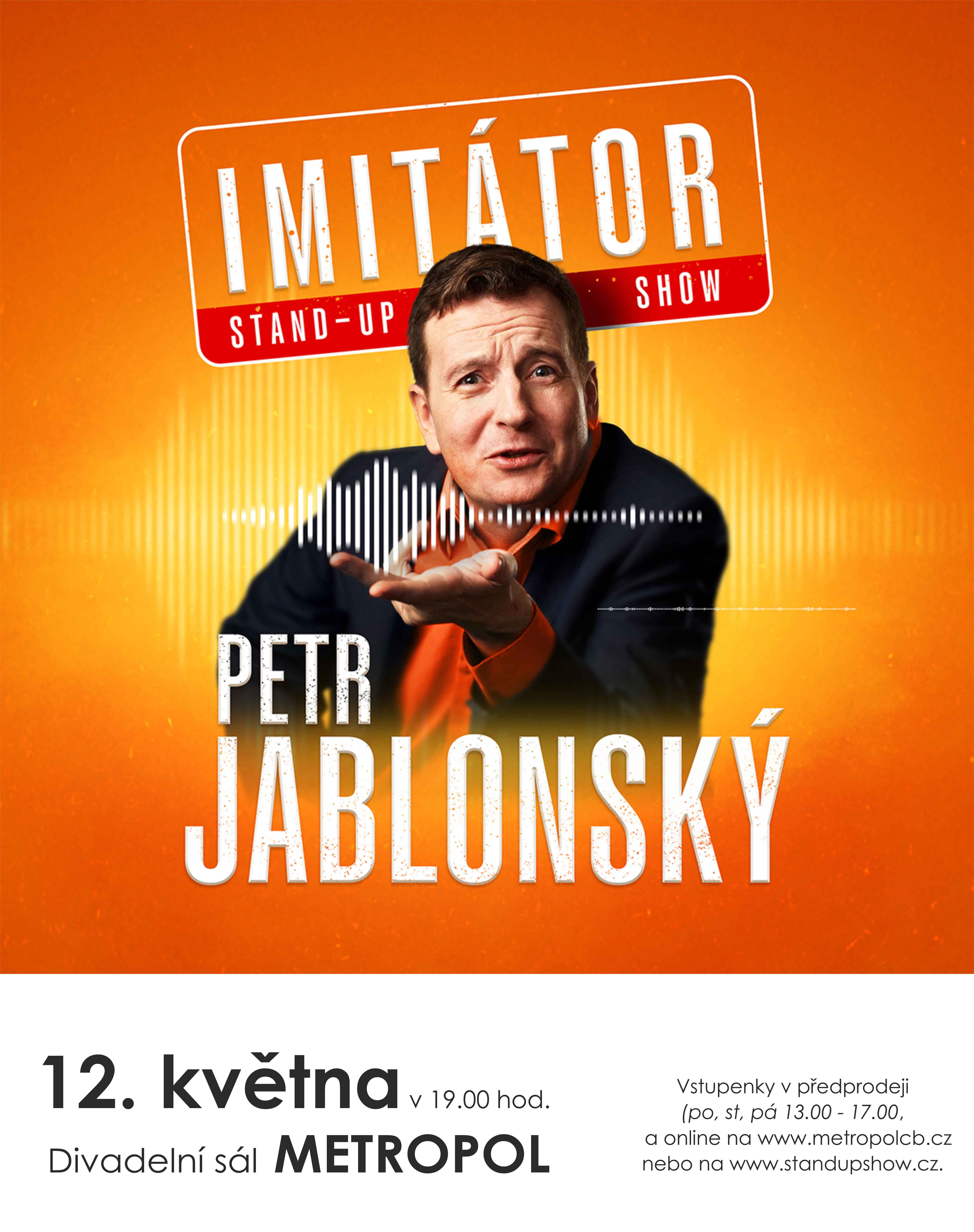 Přední český imitátor a bavič Petr Jablonský přichází na pódium se svou první celovečerní Stand-up show, která vás nenechá v klidu!