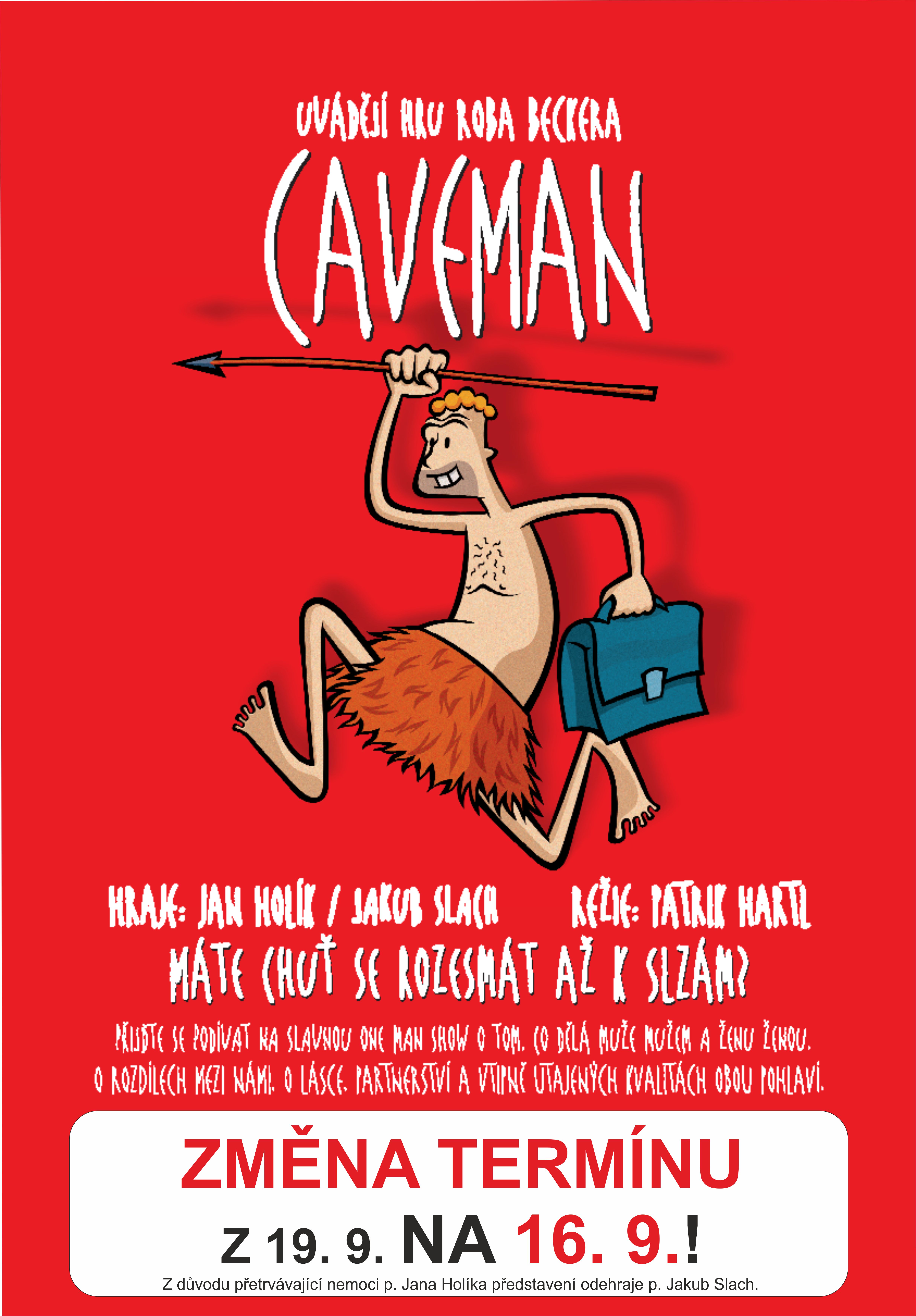 vzhledem k přetrvávající nemoci pana Holíka překládáme představení Caveman z 19. září na 16. září 2024. Bude hrát pan Jakub Slach, který Cavemana alternuje. Jelikož bohužel nemůže 19. 9., posouváme termín dopředu na 16. 9. 2024.
