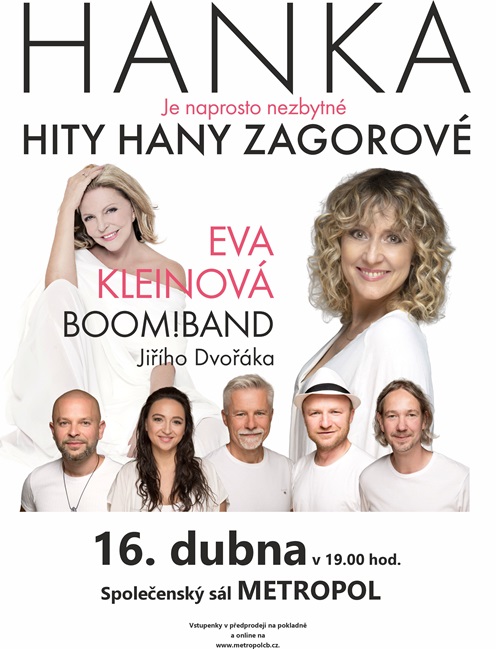 Těšit se můžete na její největší hity v autentických aranžních za doprovodu Boom!Badnu Jiřího Dvořáka - kapely, která Hanku doprovázela od roku 2010 na všech jejích koncertech. Charismatická zpěvačka a původní vokalistka Hany Zagorové Eva Kleinová s citem a respektem vrací její nezapomenutelné písně zpět na pódium.