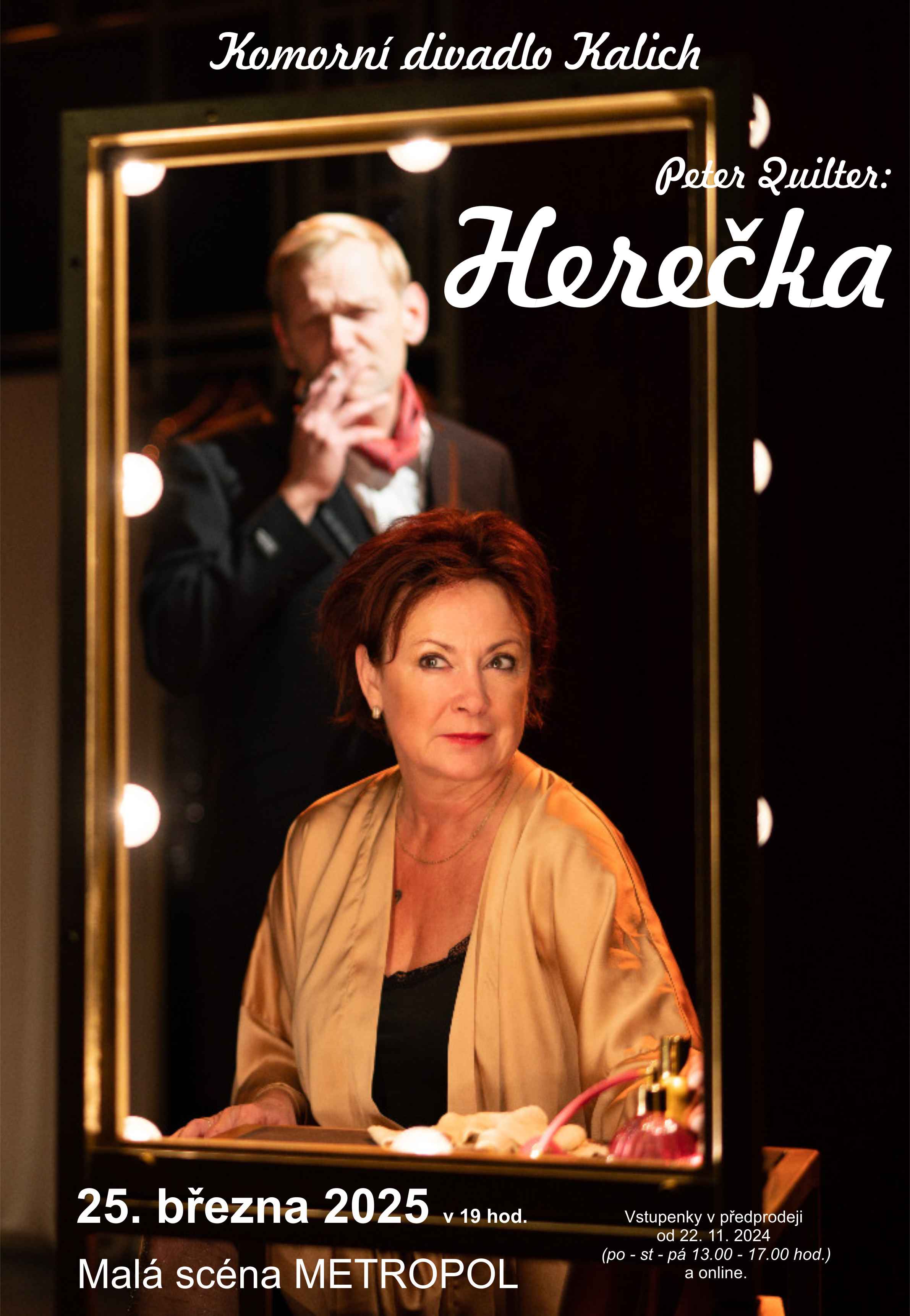 Představení Herečka uvedeme v úterý 25. března od 19 hodin na Malé scéně Metropolu, kde máte mimořádnou příležitost být v bezprostředním kontaktu s herci a užít si divadelní atmosféru naplno. Vstupenky zakoupíte v našem předprodeji nebo on-line zde: