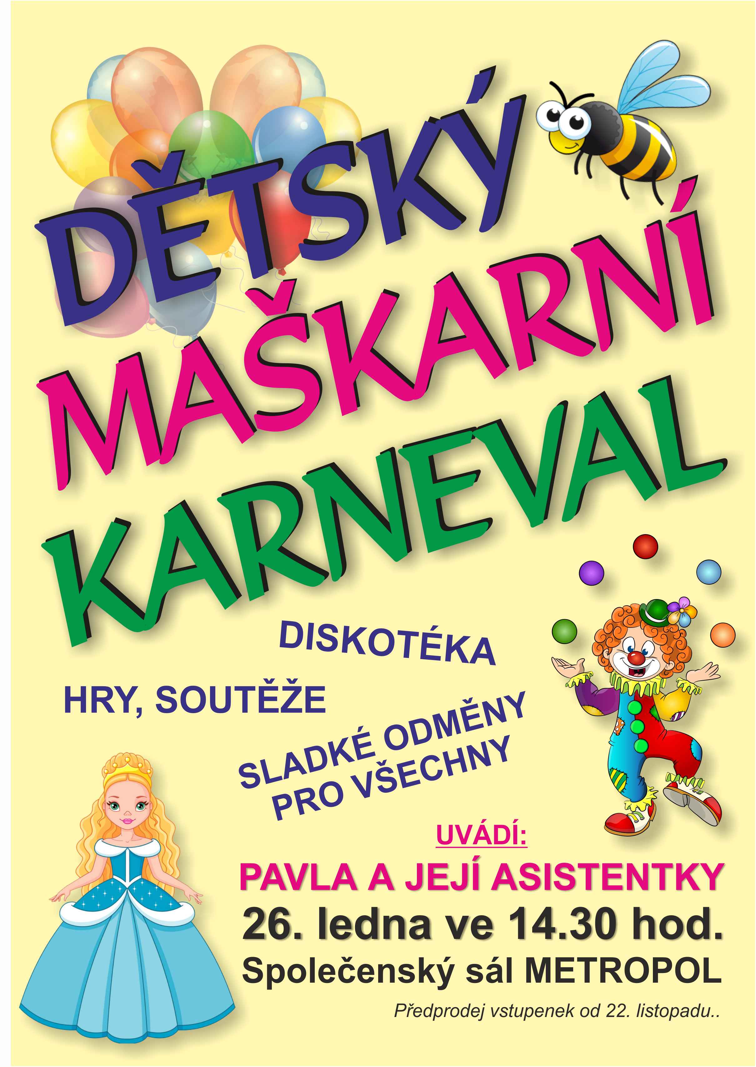 V neděli 26. ledna zveme do Metropolu na maškarní bál malé a nejmenší!!!
