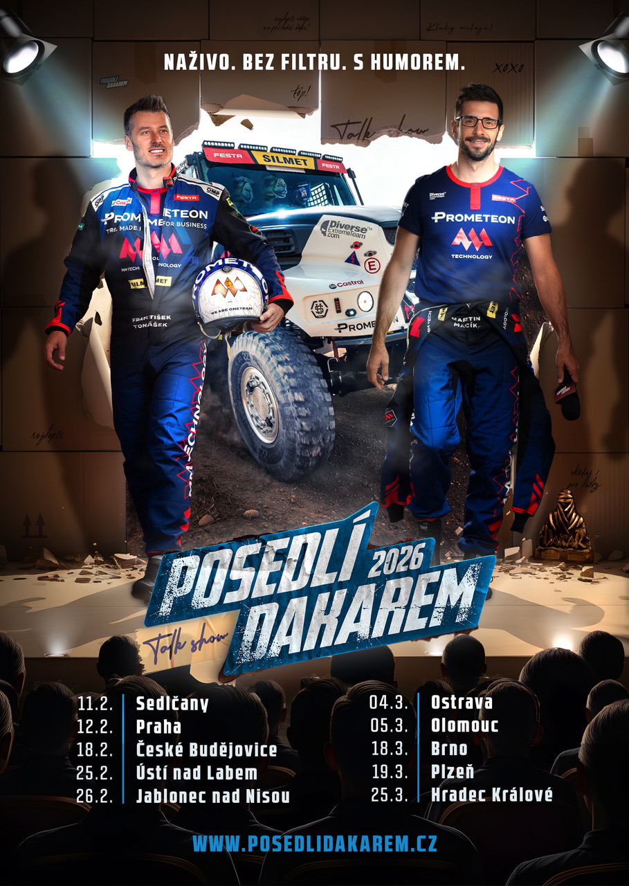 Talk show Posedlí Dakarem 2026 tě vtáhne přímo do kabiny – tam, kde to hučí, práší a vznikají ty nejzábavnější historky. Připoutej se, vezmeme to pod plným plynem po celé ČR...