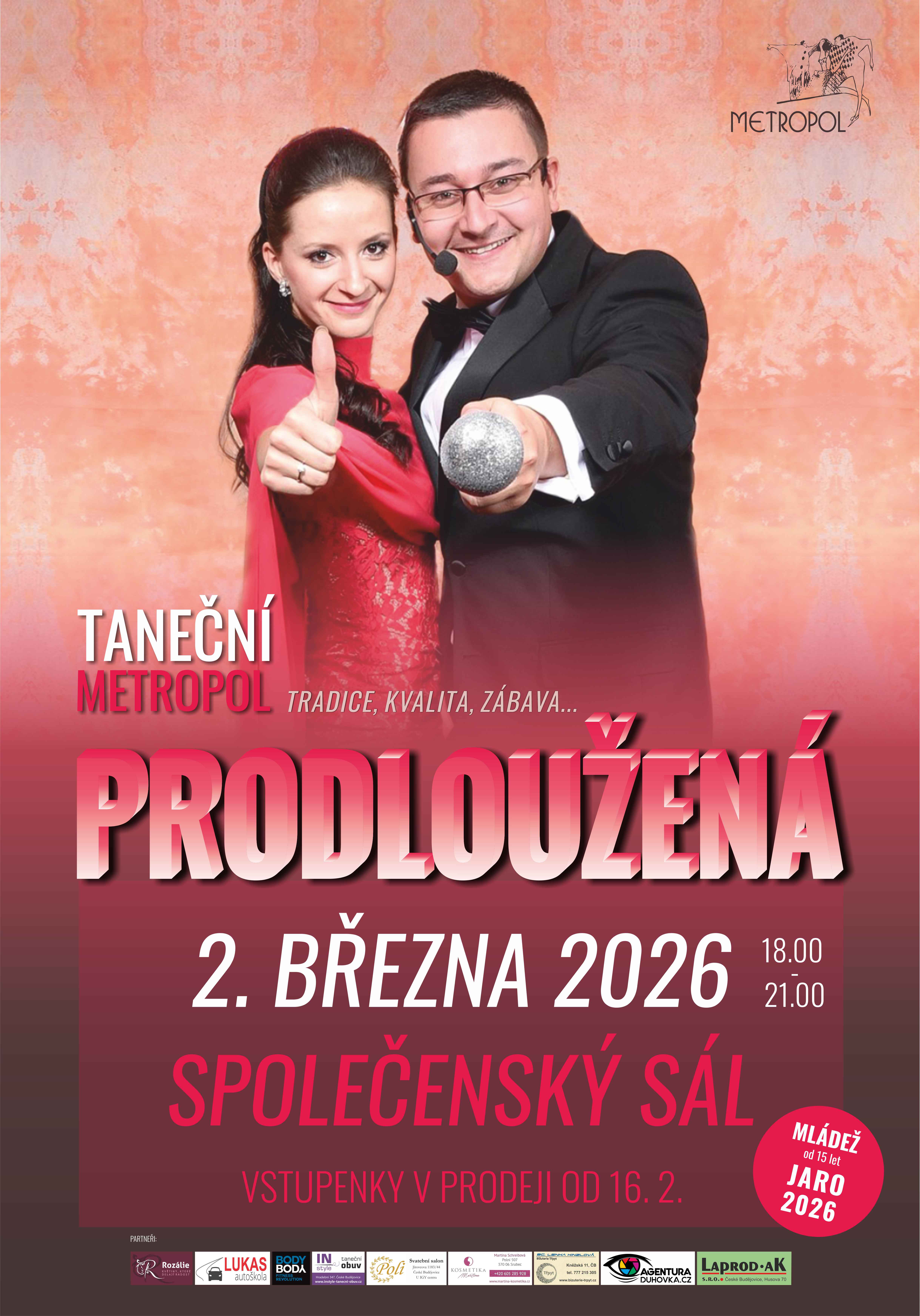 Taneční kurz je v plném proudu a naši tanečníci budou mít první příležitost předvést rodičům, prarodičům, kamarádům i známým dosud získané taneční zkušenosti, a to v rámci Prodloužené tanečního kurzu. Pod vedením tanečních mistrů Jany a Tomáše Rynešových na vás kromě tance čeká večer plný hudby, zábavy a také soutěží o ceny. K tanci a poslechu zahraje kapela TO Panorama. Těšit se můžete i na oblíbený fotokoutek Agentury Duhovka...