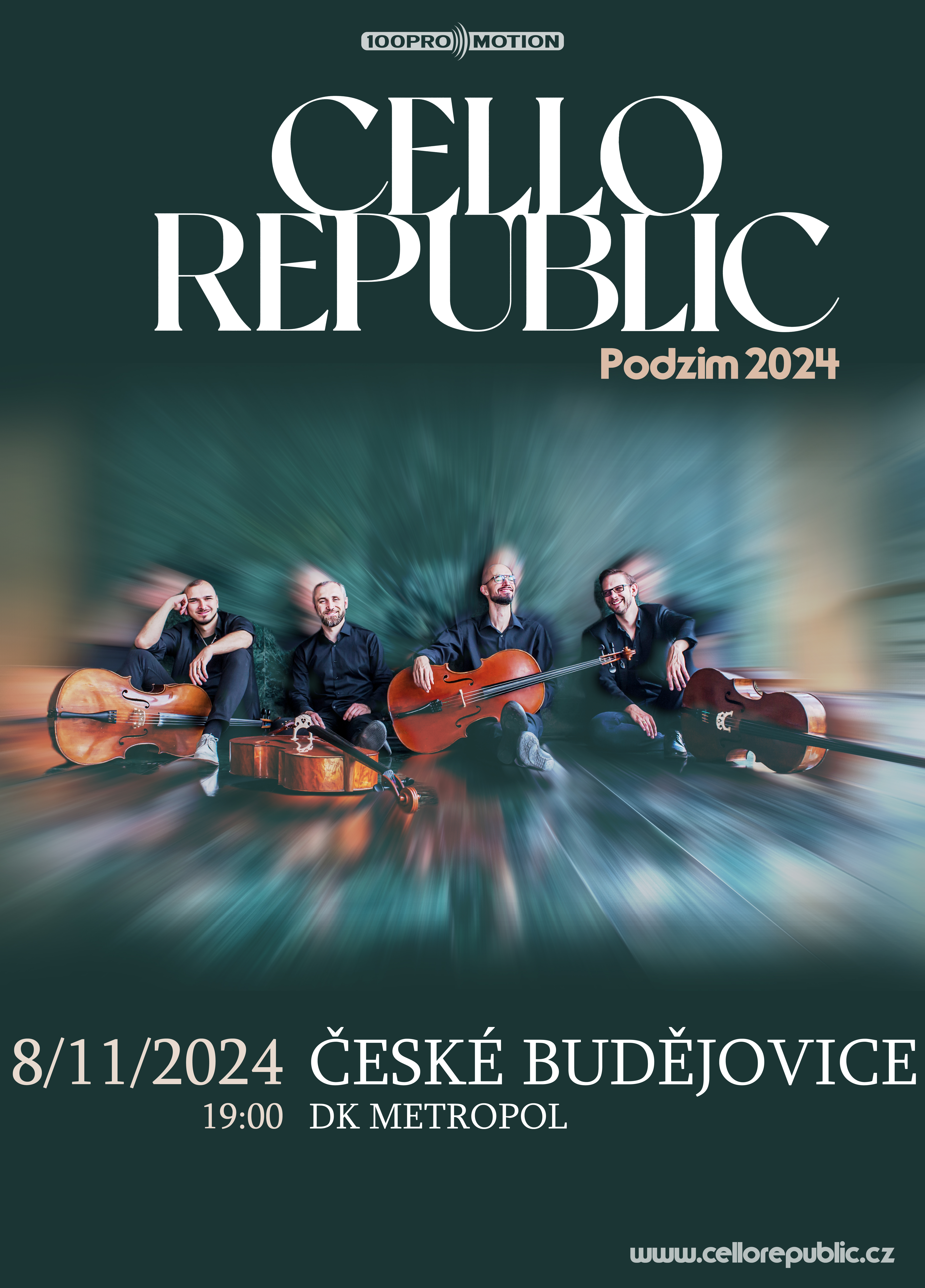 CELLO REPUBLIC vydali na konci roku 2022 své album s názvem “FREEDOM", k němuž odehráli několik úspěšných turné. Nyní přicházejí s novou koncertní šňůrou “PODZIM 2024”. Více na www.cellorepublic.cz. Předprodej v síti Ticketportal.