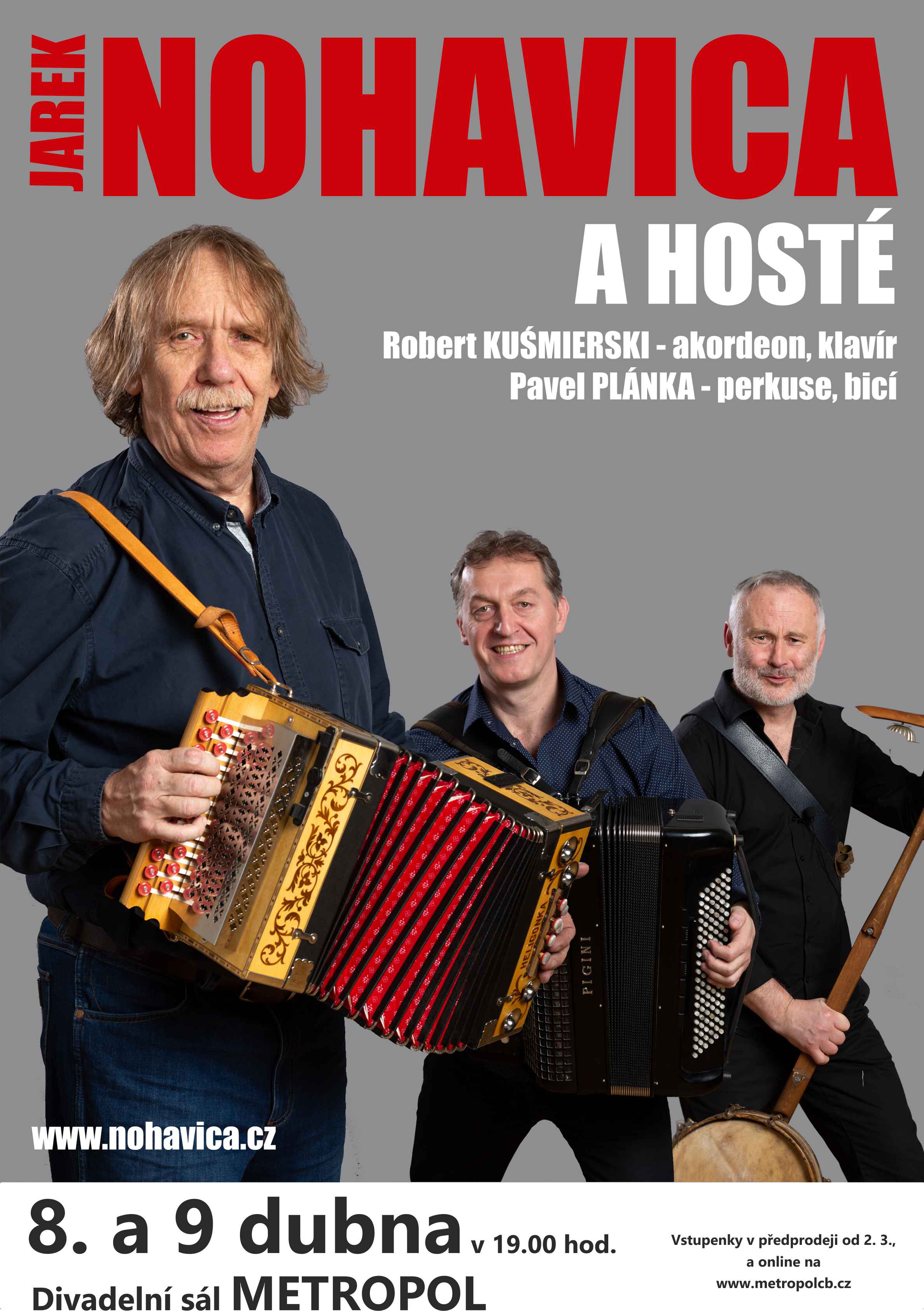 Vstupenky k dispozici v předprodeji Metropolu (PO - ST - PÁ 13 - 17 hod.) a online na www.metropolcb.cz od 2. března (13 hod.).